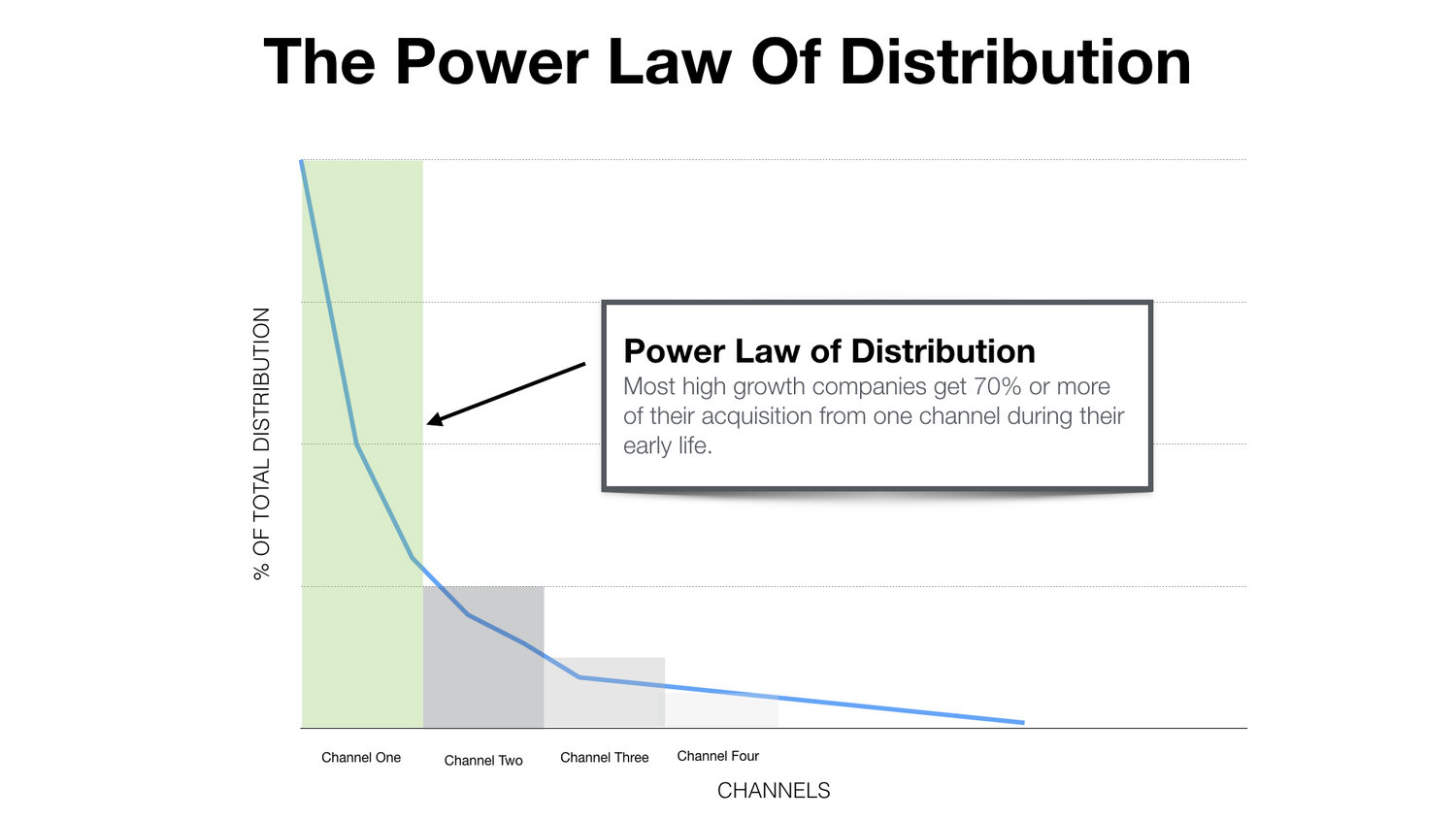 Unfortunately, marketing doesn't work like that. Peter Thiel popularized the idea that 'distribution follows the power law,' which Brian Balfour (one of my all-time favorite marketers) further explained in this post: